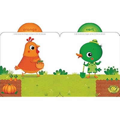 Pour découvrir et apprendre les couleurs, en s amusant à coller les 2 pages d images autocollantes, à répartir tout au long de l album, selon la couleur demandée.